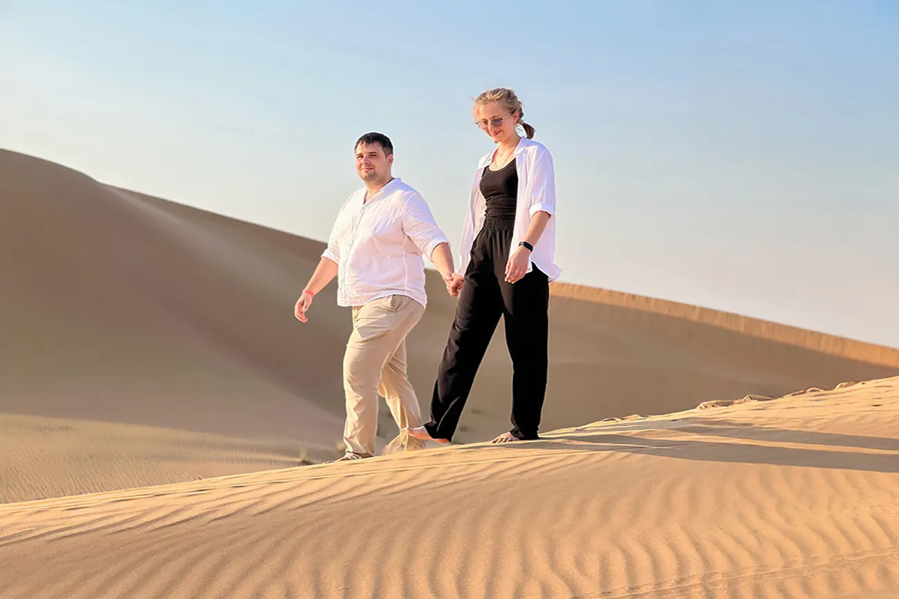 Discover the calm and beauty of the Dubai desert in the early hours with this Morning Desert Safari featuring a 20-minute camel ride. Ideal for families, couples, or anyone seeking a peaceful yet adventurous start to the day, this tour gives you a glimpse into traditional Bedouin life while enjoying the natural beauty of the dunes.