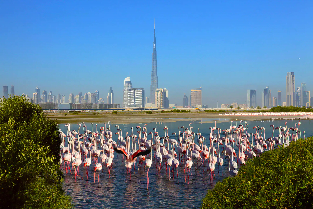 Following your desert thrills, your journey transitions into nature’s calm embrace at the Flamingo Wildlife Sanctuary in Ras Al Khor. Home to thousands of migratory birds, including the iconic flamingos, this protected area provides a rare opportunity to witness Dubai’s hidden natural beauty. Stroll along the designated paths, observe the vibrant flamingos feeding and flying, and capture stunning nature photography — all while learning about the vital role of wetlands in supporting wildlife in the desert.
